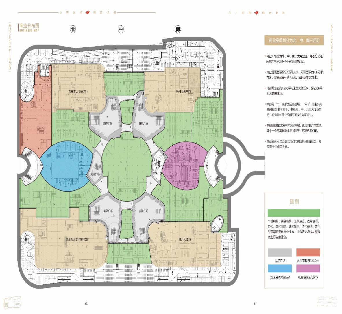 地下商業原規劃意向分為北、中、南三大商業區,北部預設約4500㎡大型超商、2300㎡真冰場,南部預設有2300㎡書城、8大放映廳電影院,其中一個層高16米IMAX影廳層,可容納300座;其他區域可引入個性購物、美食餐飲、藝術展覽、教育培訓、辦公、文化創意、休閑娛樂、孵化基地、文創街區等多元化商業業態,結合四大場館功能特質進行自由組合調配,發揮商業價值最大化,將整體商業廣場打造成為集休閑旅游、娛樂購物、文化交流為一體的新天地。(該業態規劃可接受適當優化調整,意向運營商可在響應文件中附上新業態布局方案)